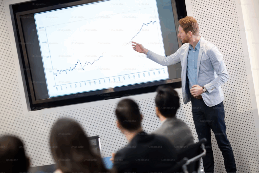 - Use gráficos simples. De preferência, dados comparativos ou projeções.